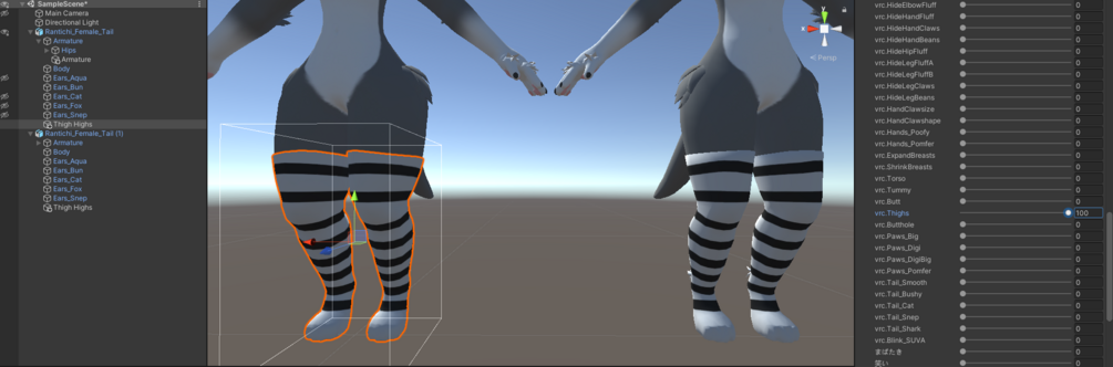 White w/Black Striped Thigh Highs for Rantich V2 Base. Includes Thigh Blendshapes and Fully Rigged